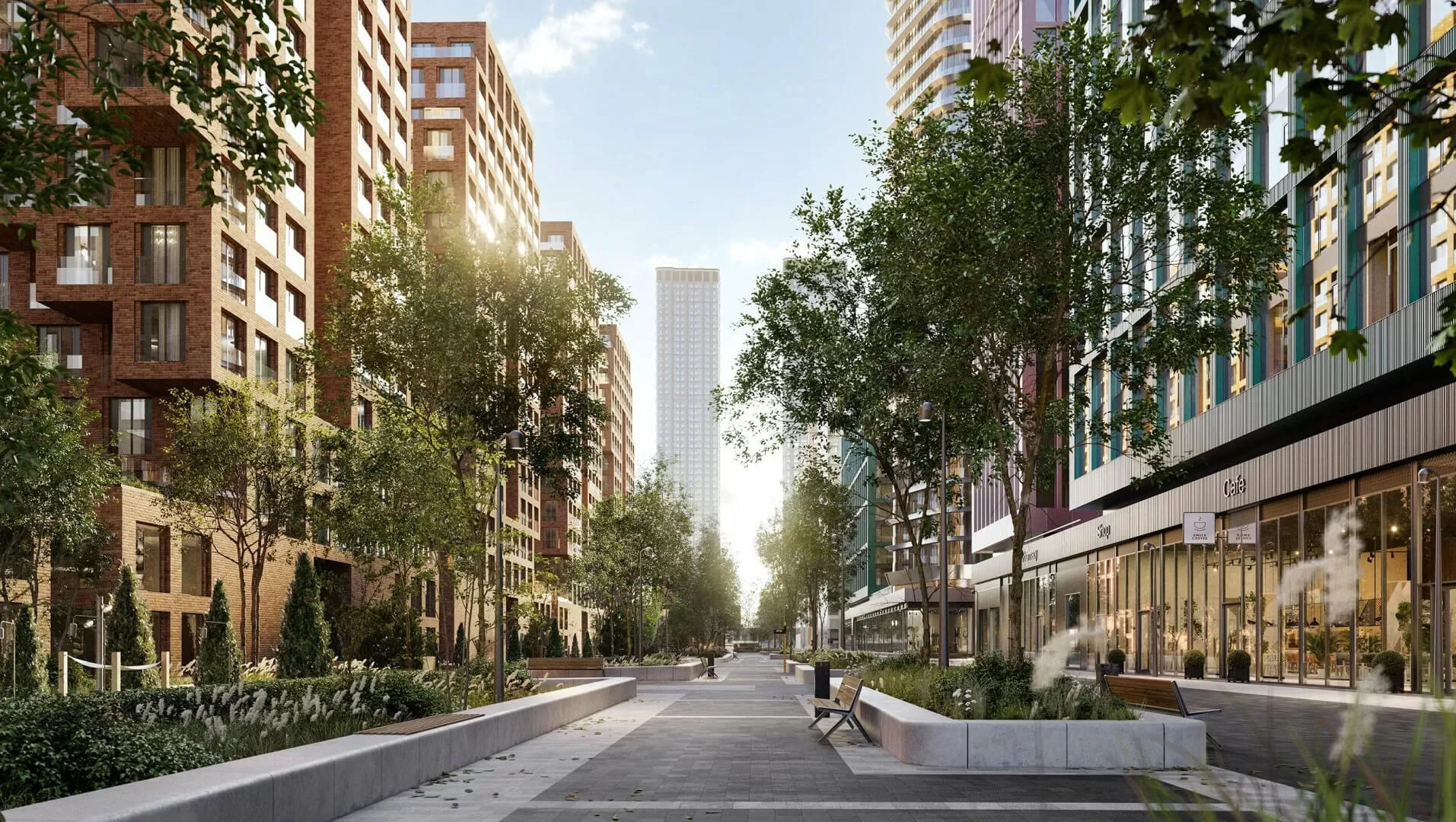 Прогулочные бульвары, уютные дворы и благоустроенная набережная формируют комфортную среду для жителей. На первых этажах зданий расположены магазины, кафе и сервисы, обеспечивающие удобство повседневной жизни. Зеленые зоны и крыши стилобатов организованы для отдыха и общения, а продуманные планировки обеспечивают потрясающие виды на воду и город.